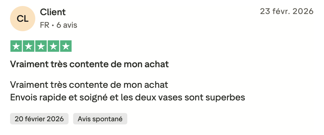 Vous avez récemment commandé chez nous ? Votre avis est précieux ! Partagez votre expérience sur Trustpilot et contribuez à guider d’autres passionnés de décoration dans leurs choix. Chaque commentaire nous permet de mieux vous servir et d’inspirer de nouveaux intérieurs.